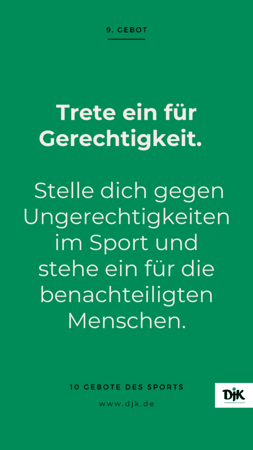 #GerechtigkeitImSport #FairPlay #NeuntesGebotDesSports #SportMitWerten #Chancengleichheit #DJKGemeinschaft #TeamFairness #DJK #DJKSportverband #zehn-gebote-des-sports#DJK #DJKSportverband #zehn-gebote-des-sports