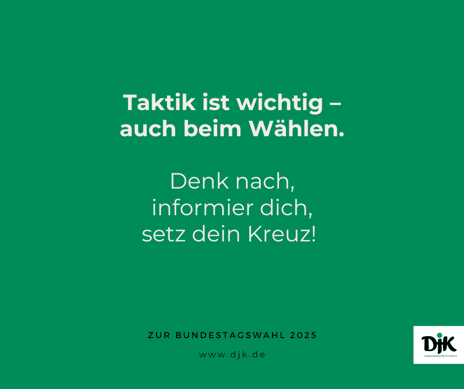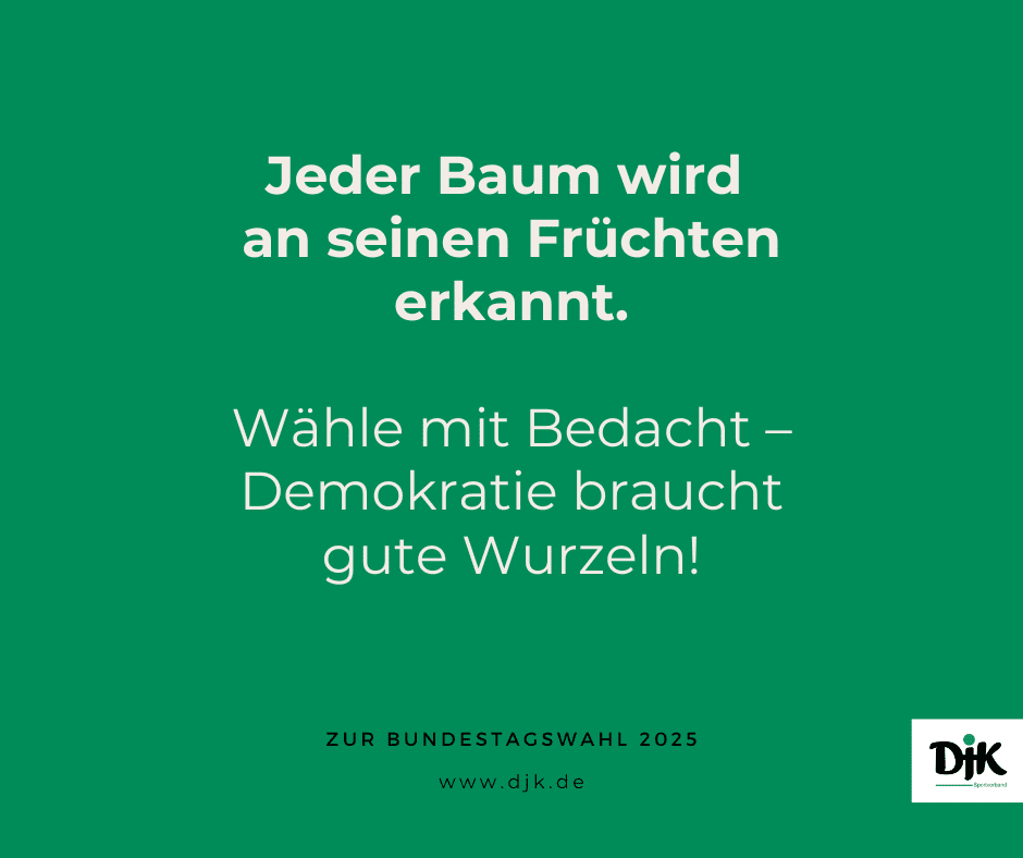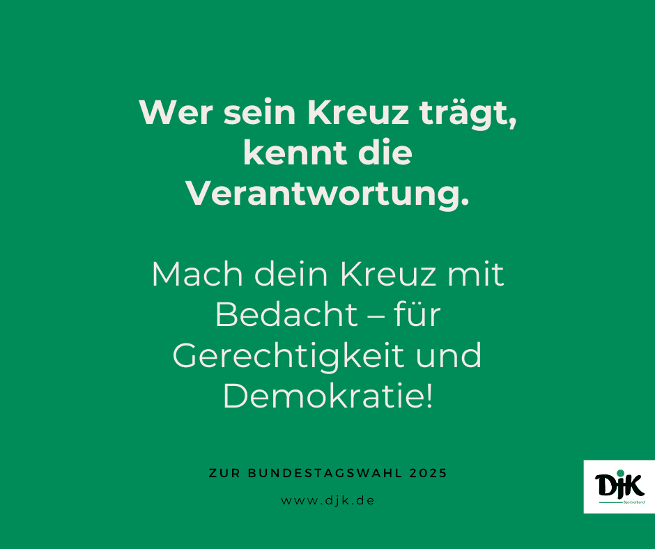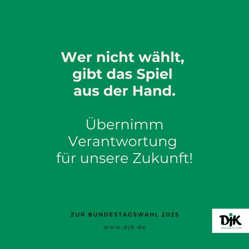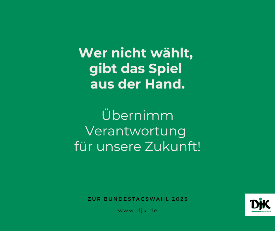 Die DJK möchte alle dazu ermutigen, sich aktiv an der Gestaltung der Gesellschaft zu beteiligen – durch Sport, soziales Engagement und nicht zuletzt durch die Stimmabgabe bei der Wahl.
