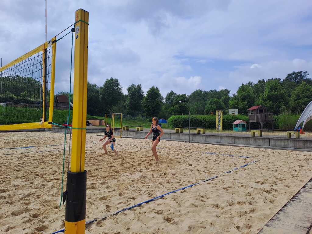 Beachvolleyball: Findet auf Sand statt, was die Bewegungen schwieriger und anstrengender macht. Das Feld ist etwas kleiner und misst 8 x 16 Meter, aufgeteilt in zwei 8 x 8 Meter große Hälften.