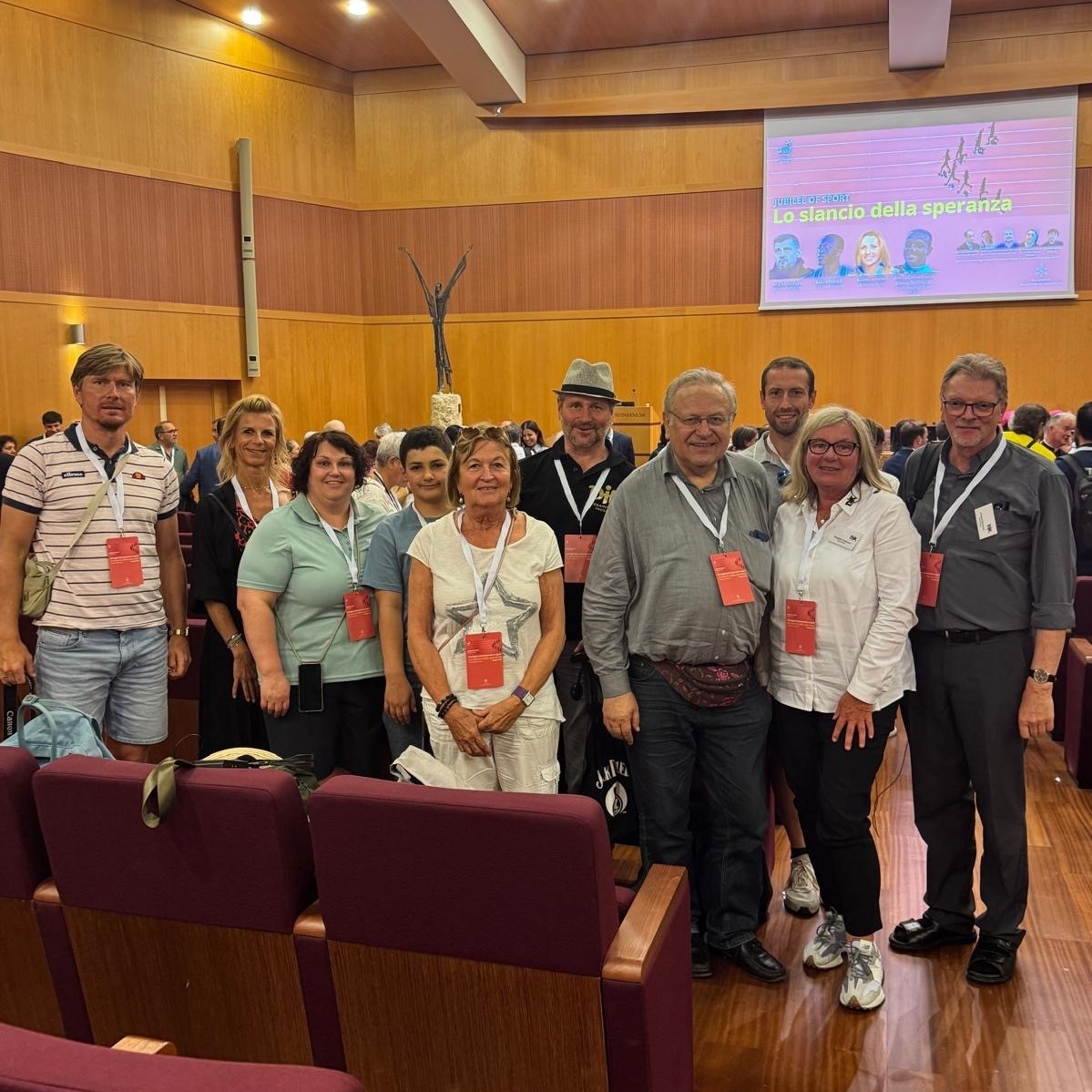 Ein Moment für die Geschichte! ✨ Elisabeth Keilmann, Pfarrer Erhard Bechtold und Michael Leyendecker haben Deutschland bei der Sportwoche des Heiligen Jahres in Rom vertreten! 🇩🇪🤝 Mit dabei: eine großartige Delegation des DJK-DV Passau.