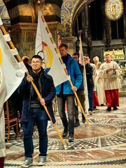 Den Samstagnachmittag gestaltet traditionell der ausrichtende DJK Diözesanverband und der DV Aachen hatte verschiedene Möglichkeiten vorbereitet, um die Stadt Aachen und deren Sehenswürdigkeiten zu entdecken. Mit neuen Eindrücken aus der Domschatzkammer oder dem Centre Allemagne trafen sich alle beim Gottesdienst im Aachener Dom, der gemeinsam mit Bischof Dr. Dieser gefeiert wurde. Am Abend ging es zum festlichen Abendprogramm zurück in die Bischöfliche Akademie. Neben Zeit zum gemütlichen Beisammensein wurden zwei Personen für ihr ehrenamtliches Engagement in der DJK Sportjugend geehrt. Lea Stahl und Samuel Brunkel erhielten die Ehrennadel in Silber für ihr jahrelanges Engagement in der DJK Sportjugend.