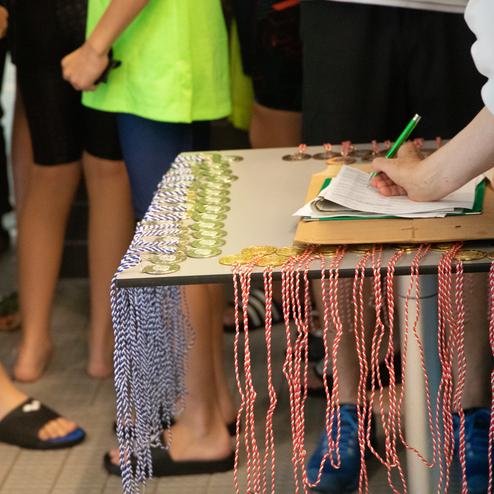 Die Stimmung im Hallenbad war elektrisierend. Der Nervenkitzel war greifbar, als die jungen Athlet*innen vor dem Start ihre maximale Konzentration auf den Pfiff des Starters richteten. Dann ging es los: Muskeln angespannt, Adrenalin auf dem Höhepunkt, explodierten die Schwimmer*innen von den Startblöcken ins Wasser. Bei Disziplinen wie Freistil, Brust, Rücken und Schmetterling wurde schnell klar: Hier waren ambitionierte Nachwuchstalente am Werk. Die Staffelläufe und das Elimination Race, bei dem nur die schnellsten Schwimmer*innen in die nächste Runde kamen, waren die Höhepunkte des Wettkampfs.