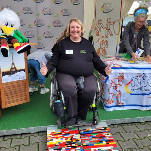 Auch Magdalena Müller erinnert sich gerne an die Aktion: „Nachdem Heike vom DJK-PossibiliTeam Kevin gebeten hatte, wenigstens ein oder zwei Steine mitzubauen, weil sie die Rampe dringend braucht, um mit dem Rollstuhl voranzukommen, hat ihn das Lego-Fieber gepackt. Er hat mehrere Minuten geholfen, die Rampe zu bauen.“