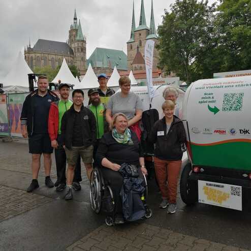 Das inklusive Fahrrad-Taxi war vom ersten Tag an ein Publikumsmagnet. Sportreferent Pascal Bühler verrät uns: "Wir wollten mit unserer Aktion – das Inklusive DJK Bike Taxi – mehr Bewusstsein für Inklusion im Sport und Alltag schaffen. Die Aktion kam super an und sowohl die Teilnehmer*innen als auch das possibiliTeam waren begeistert über die tollen Gespräche."
