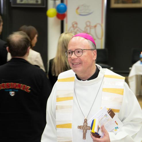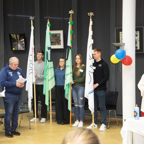Der Gottesdienst im umgestalteten Tagungssaal mit Bischof Dr. Stephan Ackermann unter musikalischer Gestaltung durch „Coloured Voices“ läutete den Samstagabend ein. Der Festabend hielt eine besondere Überraschung bereit: Lavinia Schuller erhielt für ihr Engagement die Ehrengabe überreicht durch Leandra Görtz, Vorstandsmitglied der Deutschen Sportjugend. Auch Fabian Pieters durfte sich über eine Dankesrede für sein langjähriges Engagement als Bundesvorsitzender freuen. Nach einem kurzen Fußweg fand der Abend einen gelassenen Ausklang in den Räumlichkeiten der Katholischen Studierendengemeinschaft.