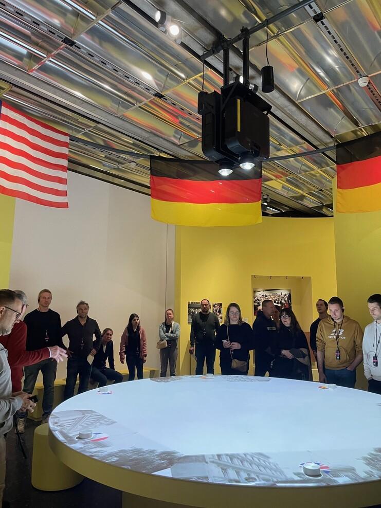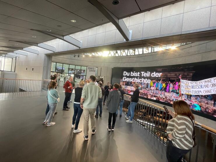 Anschließend bot sich den Teilnehmenden die Möglichkeit zur individuellen Arbeit in kleinen Gruppen, bevor sich alle nach dem Mittagessen im Haus der Geschichte in der Innenstadt von Bonn einfanden. Die Teilnehmenden wurden in zwei Gruppen aufgeteilt und erhielten jeweils eine 1,5‑stündige Führung durch die Ausstellung. Im Mittelpunkt stand die deutsche Geschichte nach 1945 – von den Nachkriegsjahren über die Teilung Deutschlands bis hin zur Wiedervereinigung und Entwicklungen der jüngeren Zeitgeschichte. Die Führung bot anschauliche Einblicke in politische, gesellschaftliche und kulturelle Veränderungen und regte zu Austausch und Reflexion an.