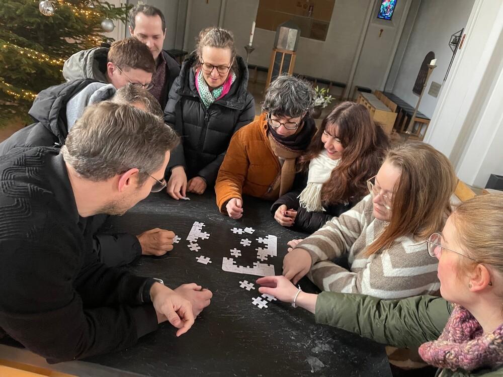 Der Tag begann erneut mit einem bewegten Tageseinstieg, diesmal in der Kapelle des Tagungshauses. Dabei drehte sich der Impuls um die Parabel der Talente, Matthäus 25:14-30. Nach dem Impuls waren alle Teilnehmenden eingeladen, über ihre Talente zu reflektieren und diese auf einem Puzzlestück festzuhalten, welches anschließend gemeinsam zu einem großen DJK-Puzzle zusammengesetzt wurde. Gemeinsam wurde sichtbar, wie sich diese individuellen Puzzleteile zu einem lebendigen und starken DJK‑Miteinander zusammensetzen.