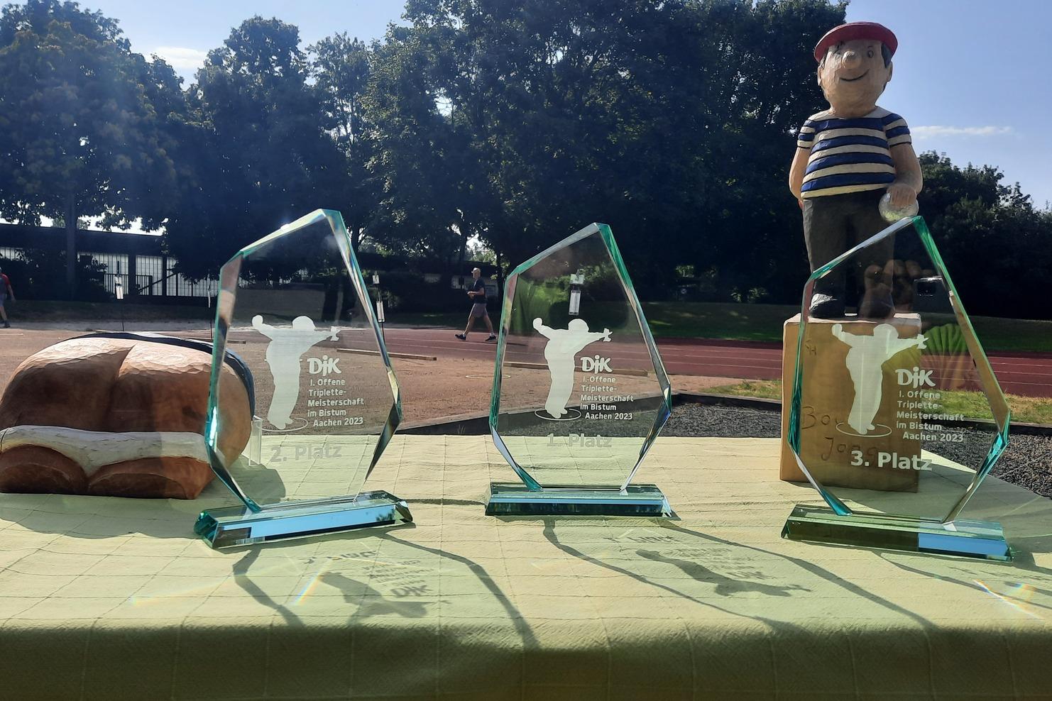 So siegten im Triplette-Wettbewerb am Samstag Dieter Zumbriegel, Sabine Wolf und Bernhard Wolf von der DJK Betzdorf (DV Trier) und im Doublette-Wettbewerb am Sonntag Wolfgang Pongs und Horst Schulte vom ausrichtenden Verein DJK SF 08 Rheydt (DV Aachen).