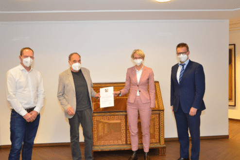 Münster. Regierungspräsidentin Dorothee Feller hat heute (Montag, 15. März) die Anerkennungsurkunde für die DJK Bildungs- und Sport Stiftung an Wolfga…