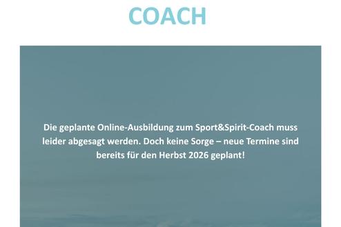 Die geplante Online-Ausbildung zum Sport&Spirit-Coach muss leider abgesagt werden. Doch keine Sorge – neue Termine sind bereits für den Herbst 2026 ge…