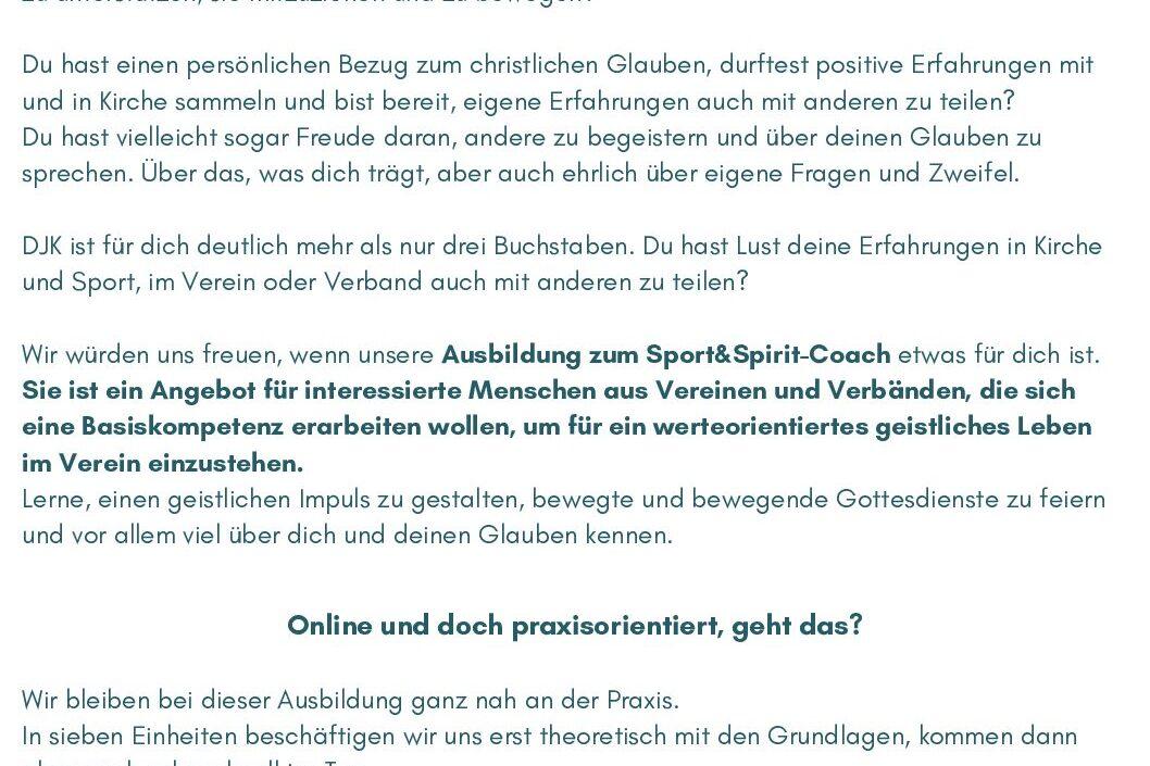 Nachdem die erste Online-Ausbildung zum Sport&Spirit Coach Ende Januar 2023 erfolgreich abgeschlossen wurde, wird der Kurs im Herbst 2023 noch einmal angeboten.