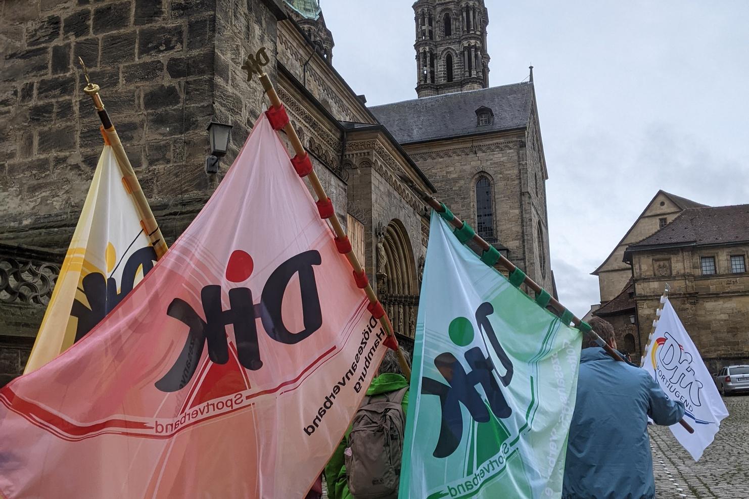 Bamberg (02.10.2022). Die DJK-Bundeswallfahrt zum hundertjährigen Jubiläum des DJK-Sportverbands ist am 2. Oktober 2022 – pandemiebedingt zwei Jahre später – mit dem Titel „Auf`s Neue unter Gottes Himmel“ in Bamberg mit ca. 600 Teilnehmer*innen
