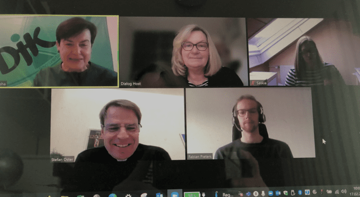 Langenfeld (21.02.2022). Bischof Dr. Stefan Oster SDB (Passau) ist als stellvertretender Vorsitzender der Jugendkommission der Deutschen Bischofskonferenz der Kontaktbischof für die DJK Sportjugend eingesetzt. Am Donnerstag, den 17.2.2022 trafen sich Bischof Dr. Stefan Oster, Elsbeth Beha, Präsidentin des DJK-Sportverbands, die Geistliche Bundesbeirätin Elisabeth Keilmann und die Bundesjugendleiter*innen Saskia Ketterer und Fabian Pieters erstmalig zu einem gemeinsamen Kennenlernen. Pandemiebedingt fand das Treffen online statt.