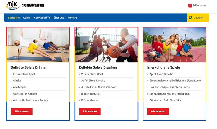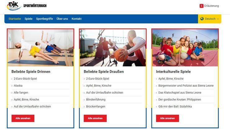 Das Sport- und Spielewörterbuch der DJK Sportjugend ist eine Online-Plattform, die 87 Spiele und über 230 Sportbegriffe in insgesamt 12 Sprachen bereithält. Unter www.sport-woerterbuch.de kön-nen diese Spiele und Begriffe in die verschiedenen Sprachen übersetzt werden. Seit dem Relaunch der Seite sind Russisch und Ukrainisch dazu gekommen; außerdem sind die Spiele und Begriffe in Deutsch, Englisch, Französisch, Spanisch, Serbisch, Türkisch, Arabisch, Chinesisch, Japanisch und Hebräisch.