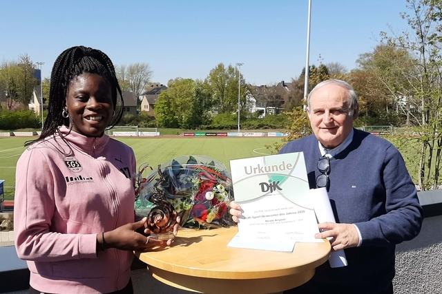 Zum vierten Mal wählten die Bundesfachwarte*innen und Diözesan-Sportwarte*innen, die der Kopf von 20 Sportarten innerhalb des DJK-Sportverbands sind im Vorfeld des Bundestags den*die „DJK-Newcomer*in 2020". In diesem Jahr fiel die fast einstimmige Wahl aufgrund ihrer herausragenden Leistungen im Frauen-Fußball auf Nicole Anyomi.