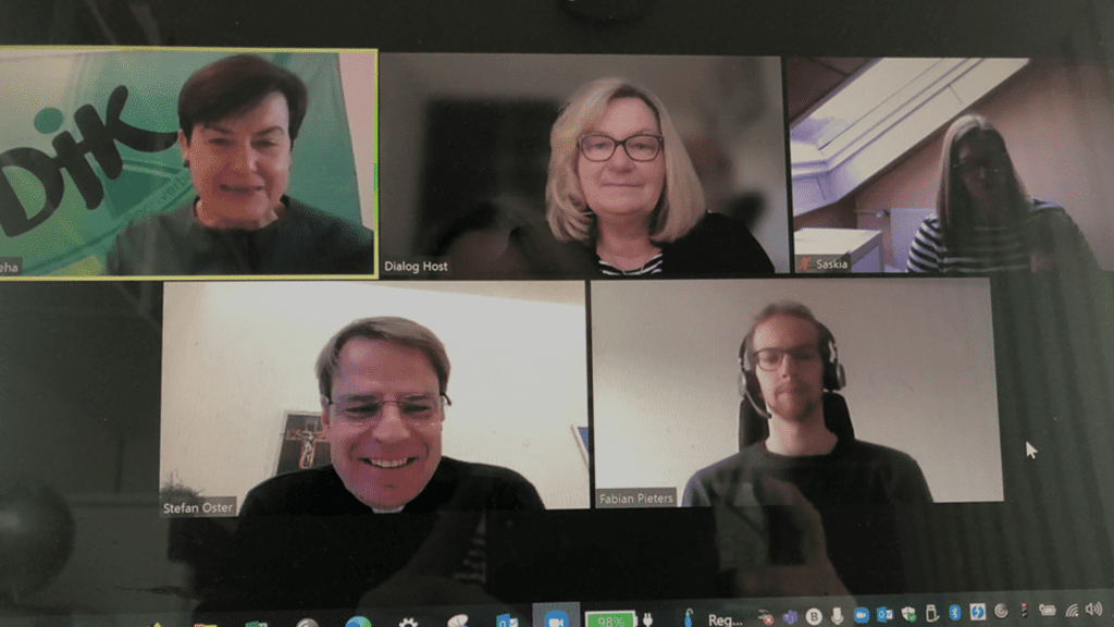 Langenfeld (21.02.2022). Bischof Dr. Stefan Oster SDB (Passau) ist als stellvertretender Vorsitzender der Jugendkommission der Deutschen Bischofskonferenz der Kontaktbischof für die DJK Sportjugend eingesetzt. Am Donnerstag, den 17.2.2022 trafen sich Bischof Dr. Stefan Oster, Elsbeth Beha, Präsidentin des DJK-Sportverbands, die Geistliche Bundesbeirätin Elisabeth Keilmann und die Bundesjugendleiter*innen Saskia Ketterer und Fabian Pieters erstmalig zu einem gemeinsamen Kennenlernen. Pandemiebedingt fand das Treffen online statt.
