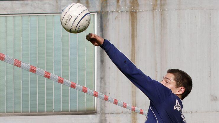 Volleyball ist eine Mannschaftssportart, bei der sich zwei Teams mit je sechs Spielern auf einem Spielfeld gegenüberstehen und versuchen, einen Ball über ein Netz auf die Seite des Gegners zu spielen.
